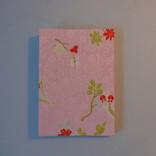 やわらかな雰囲気を残すために裏打ちした着物地を表紙に芯は地券紙です。タイトルは手書き。